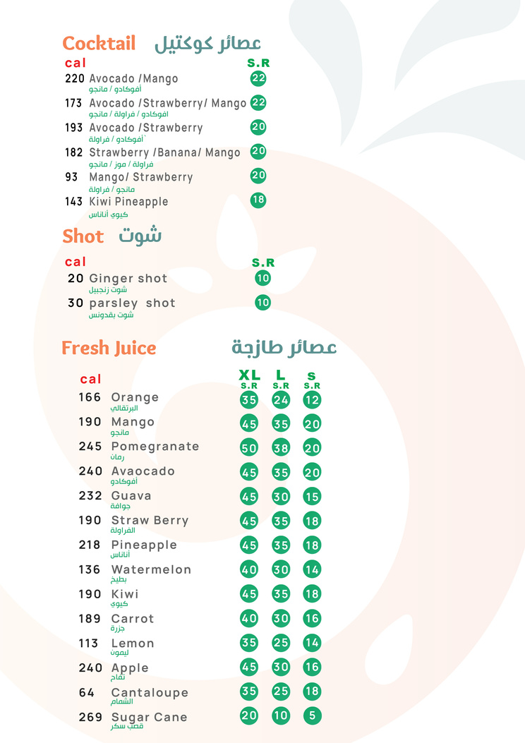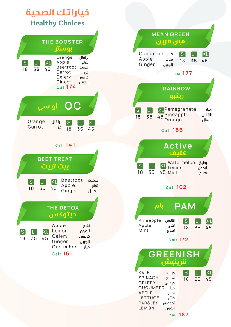 At Bathra wa Thamarah, we believe in providing the healthiest choices when it comes to juice. That’s why we use only fresh fruits and vegetables, and we squeeze them right in front of you. No sugar, no additives, no preservatives. Just pure juice from the fruit to the cup.